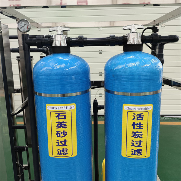 Zbiornik na wodę surową-pompa na wodę surową-piasek kwarcowy-filtr aktywowany węglem-filtr na skalę inhibitor dozowania-urządzenie zabezpieczające filtr-pompa wysokiego ciśnienia-system odwrotnej osmozy RO-zbiornik na czystą wodę